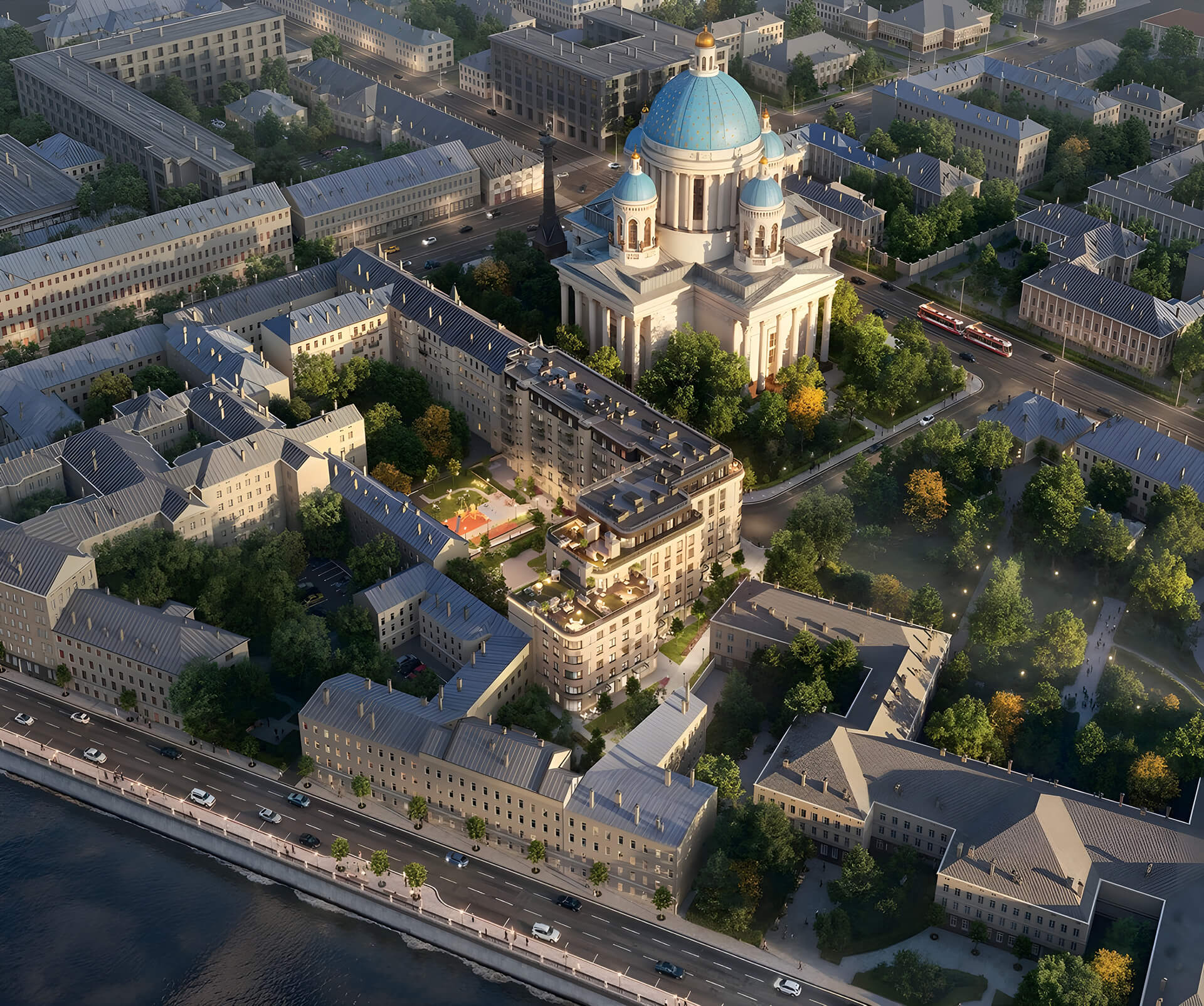 Локация на набережной реки Фонтанки — одно из главных преимуществ проекта. Это исторический район с богатым архитектурным наследием, зелёными скверами и знаковыми объектами: Троицким собором, Польским садом, Измайловским проспектом, театром на Фонтанке, усадьбой Державина и другими культурными достопримечательностями. Здесь сформирована атмосфера старого Петербурга, где каждая улица хранит свою историю, а городская среда сочетает обаяние прошлого с динамикой современной жизни.